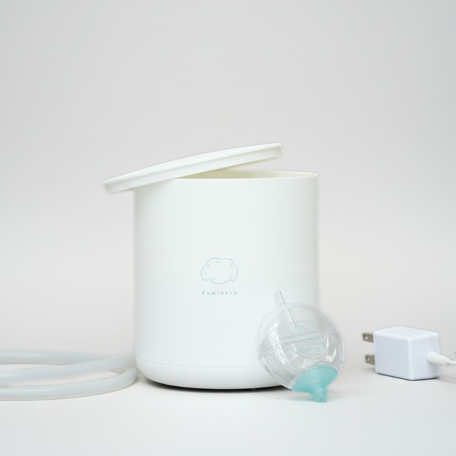 【新しい鼻水吸引器】吸引力×洗浄ラク×ミニマル|家族みんなで使える日本製医療機器 ・【パワフル吸引】高性能の吸引力で鼻水をしっかり除去。49dB設計で夜間も快適に。 ・【驚くほど小さく軽い】独自のオールイン収納でお手入れ簡単。置く場所を選ばないミニマルデザイン。 ・【日本製・医療機器の品質】0歳から大人まで使える、家族の健康を守る“鼻水ケア家電”。 製品仕様 【付属品】 ・本体 ・専用ACアダプター ・シリコンチューブ ・鼻水タンク ・先端シリコンノズル2種類(ショート型/ロング型) ・取扱説明書 【製品情報】 ・製品名:Famineru(ファミネル)電動鼻水吸引器 ・種別:機械器具32医療用吸引器 ・医療機器認証番号:307AFBZX00060000 ・最大吸引圧力:−80kPa ±10% ・電源:入力:100〜240V 50/60Hz 0.6A 出力:直流 12V 1.5A ・主な材質: 本体:ABS樹脂など 鼻水タンク:ポリカーボネートなど ・外形寸法(mm):W138 × D138 × H163mm ・重量:930g(付属品含む) ※使用目的又は効果: 家庭環境及び院内において新生児、乳幼児、小児、大人を対象に鼻腔内の鼻水の吸引に使用する。